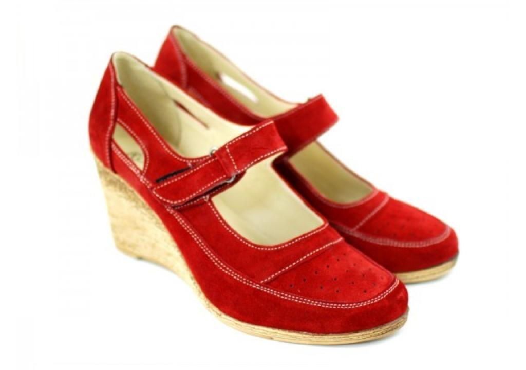 Pantofi dama piele naturala velur rosii cu platforma cod P74RVEL - Made in Romania