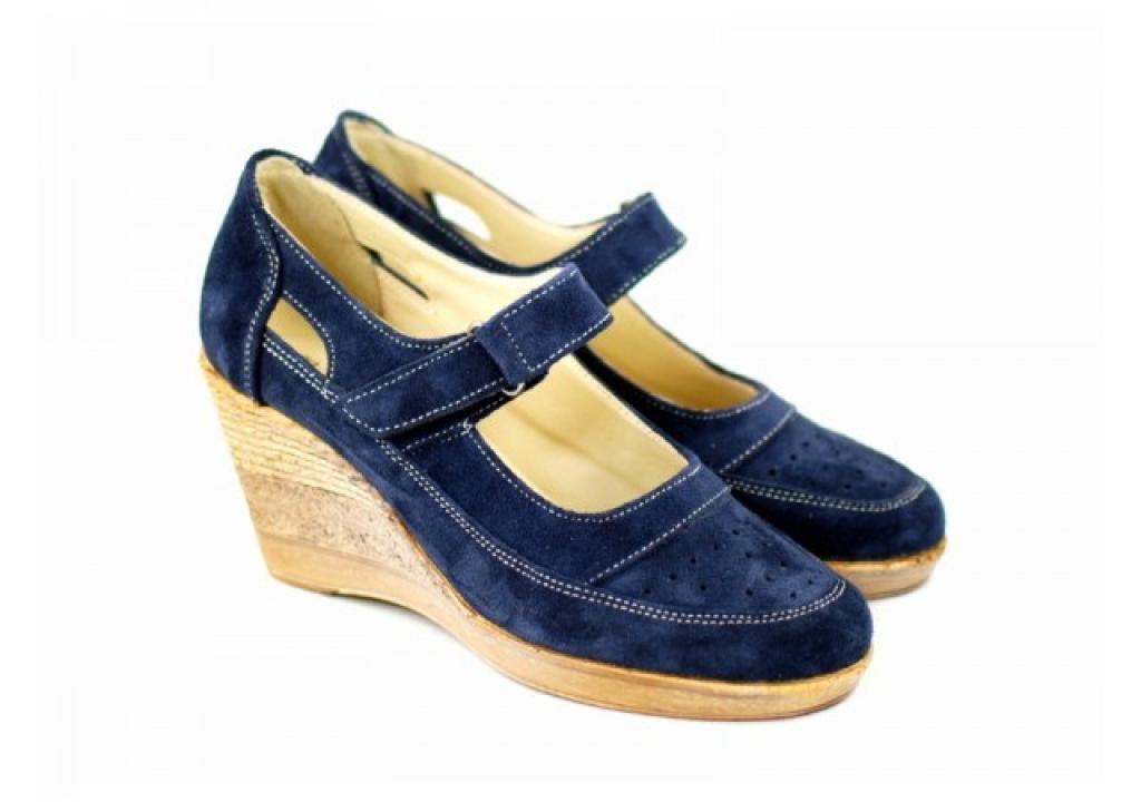 Pantofi dama piele naturala velur bleumarin cu platforma cod P74BLVEL - Made in Romania